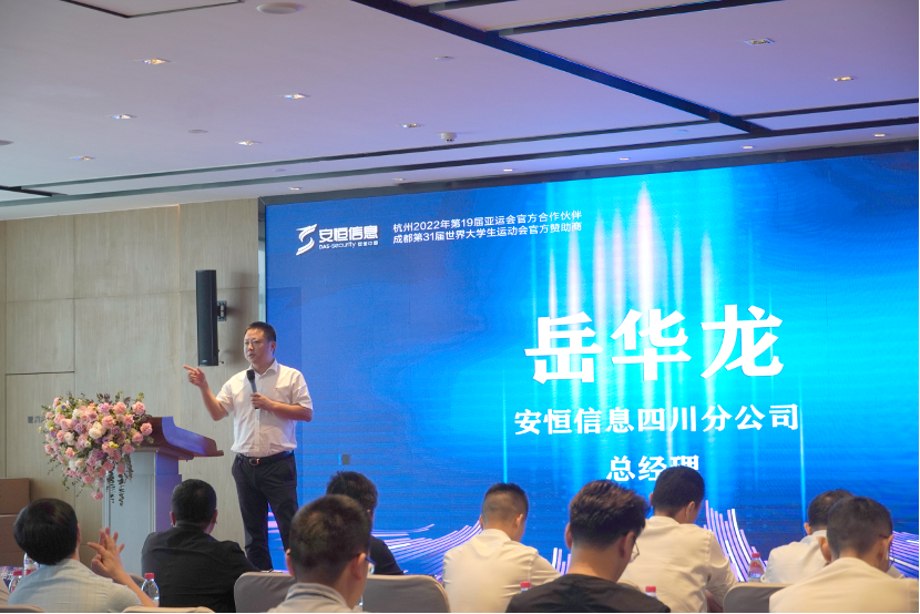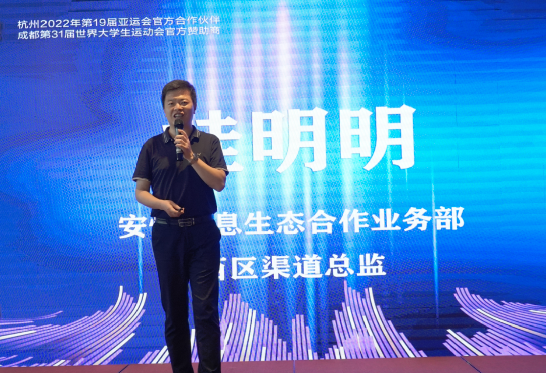 安恒信息四川分公司总经理岳华龙,分享了安恒信息四川办及渠道体系从0.1到1.0的发展历程,从名不经传到被市场认知,逐步发展成为世乒赛、成都大运会等国际赛事的网络安全核心保障单位,省级核心技术支撑单位,推动智慧城市与体育产业深度融合,促进城市信息化建设和经济社会发展。