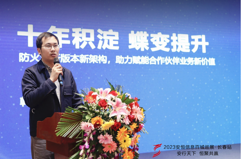随后,安恒信息长春办事处主任陈晖带来了安恒信息吉林区域三年发展的介绍,特别强调了扎根本地要做好的三个模块——安全运营中心、网络安全人才培养基地、车联网安全全国总基地,安恒信息始终专注服务价值,成就最终客户。陈晖还分享了安恒信息长春城市智能体安全运营项目,该项目荣获2022年安全守卫者计划 “安全运营专题”优秀案例,协助长春市信息中心完成安全实战化应急演练,规划建设吉林省网络空间安全运营基地,无不成为护航数字化安全的最佳实践。