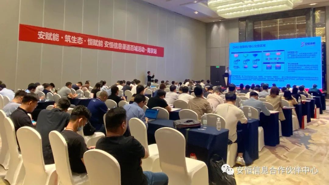 接下来会议中,安恒信息南京渠道负责人以及相应产品线产品负责人为我们从激励政策、赋能、支撑体系,大数据、云安全市场趋势与合作机会等方面进行主题分享。