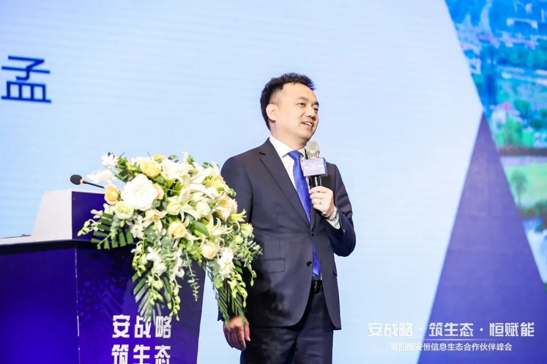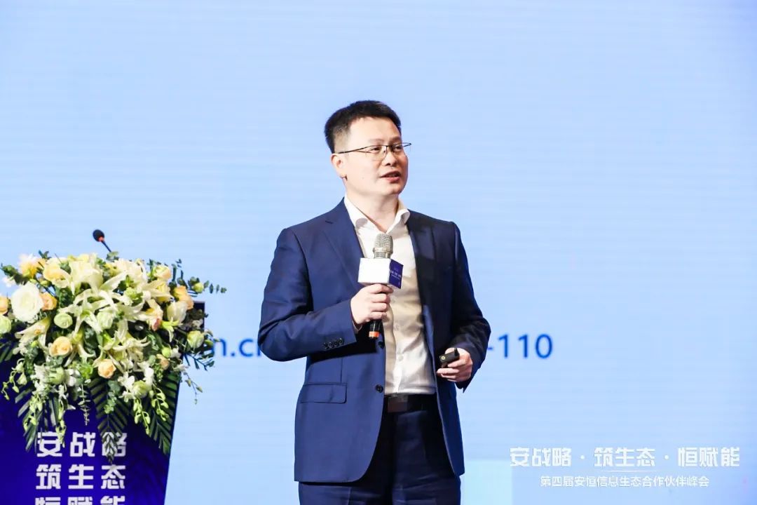 安恒信息首席营销官张小孟全面阐述安恒信息的发展历程及使命愿景,展现安恒信息近年来的快速发展及在重保活动方面的勇于担当,对安恒信息布局全国及在云大物智工领域技术先行抢占新赛道方面进行了深刻解读,结合安恒优势对生态合作进行精准定位,坚定推进生态共建,与合作伙伴携手共进,通过新监管领域的先发优势赋能合作伙伴,借助安恒完善的产品线及平台产品的优势向合作伙伴提供充足的弹药。