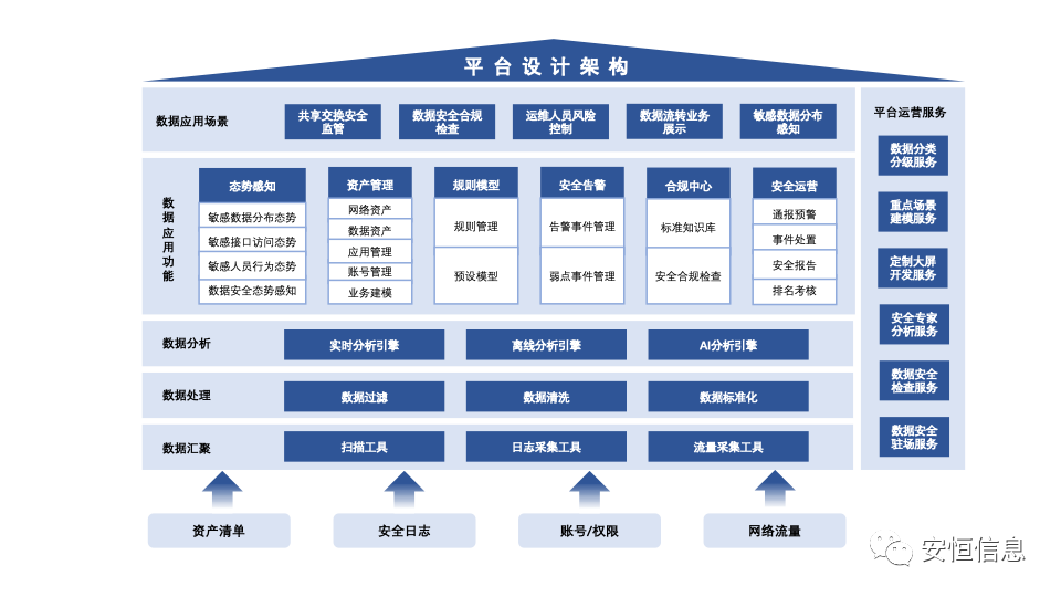 数据安全管控平台利用云计算、大数据、人工智能、智能算法等技术,通过采集、汇聚、融合计算数据安全管控对象的安全大数据,实现全方位全天候监测预警数据安全管控对象的安全威胁、风险态势和网络攻击情况,有效加强对国家重要数据、企业机密数据和个人隐私数据的识别和防护,打通与网信、公安、通管等监管机构以及本地安全企业之间的数据通道,促进安全信息的共享和业务的协同,进而实现跨部门、跨行业的网络安全协调指挥联动,为构建政务信息系统网络安全主动防御体系,大幅提升网络数据安全监管能力、构筑网络数据安全铜墙铁壁,奠定技术基础。