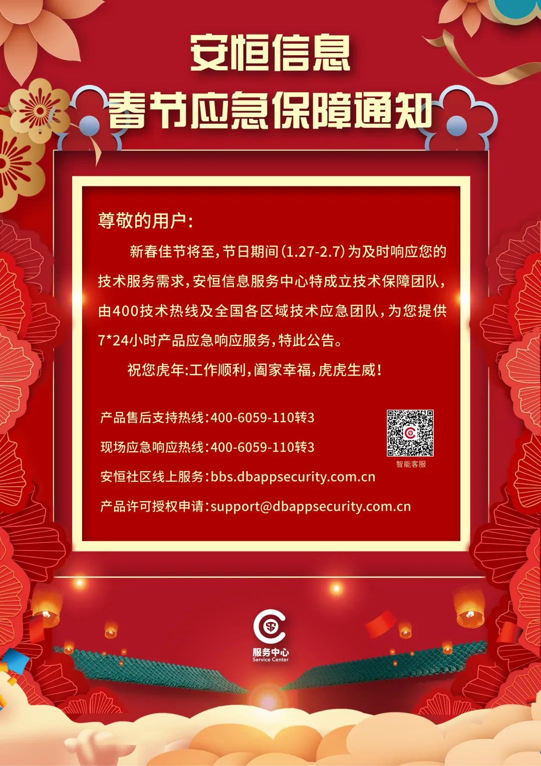 通知|安恒信息春节应急保障 7*24小时为您在线