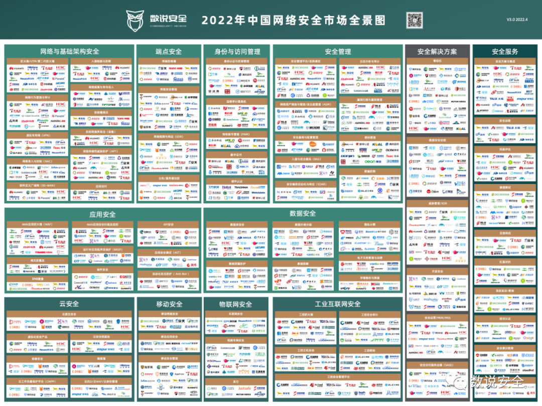 4月27日,数说安全正式发布《2022年中国网络安全市场全景图》(以下简称全景图),全景图在深入分析各细分市场的实际发展状况、市场成熟度与技术发展趋势后,对细分市场的热点品牌进行汇总和展示。安恒信息凭借多年来在网络安全领域扎实的根基和持续的创新能力,实现一级分类近乎全覆盖。