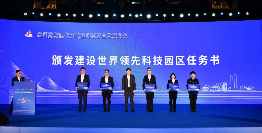 郑迪发布《建设高能级战略平台 打造世界领先科技园区行动方案》及《杭州高新区(滨江)助企纾困稳增长政策十二条》,为发改局、经信局、科技局、商务局、市场监管局颁发建设世界领先科技园区任务书。