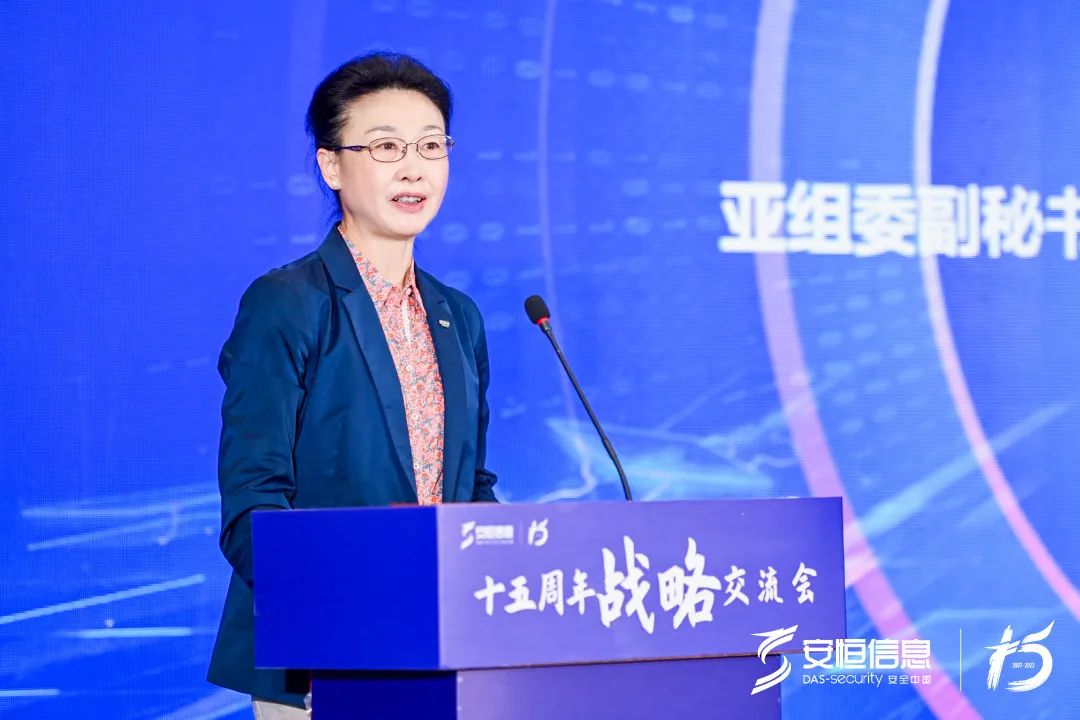 杭州亚组委副秘书长、国际奥委会委员、中国奥委会副主席李玲蔚代表杭州亚组委向安恒信息15周年庆典表示祝贺。她指出,自北京奥运会后,安恒信息几乎揽下了所有国际国内大型体育赛事的网络安保工作,为体育赛事保驾护航,也为杭州亚运会注入“强心剂”。人才战略始终贯穿在安恒信息的百年大计之中,希望安恒信息在教育和体育信息化建设方面发挥更大的作用。