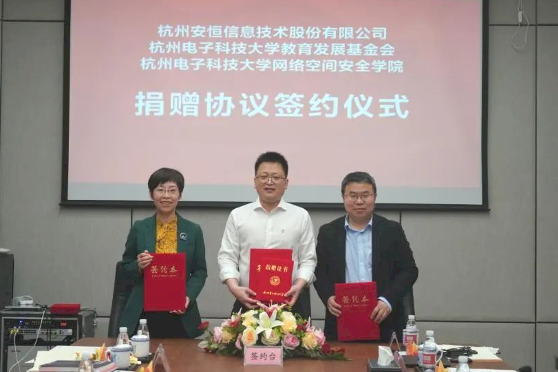 安恒信息在杭电设立安恒星计划奖学金,助力优秀的杭电贫困学子逐梦网络安全,实现人生理想。并捐赠一批先进设备软件,推进网络空间安全学院科研活动的开展,践行企业社会责任。