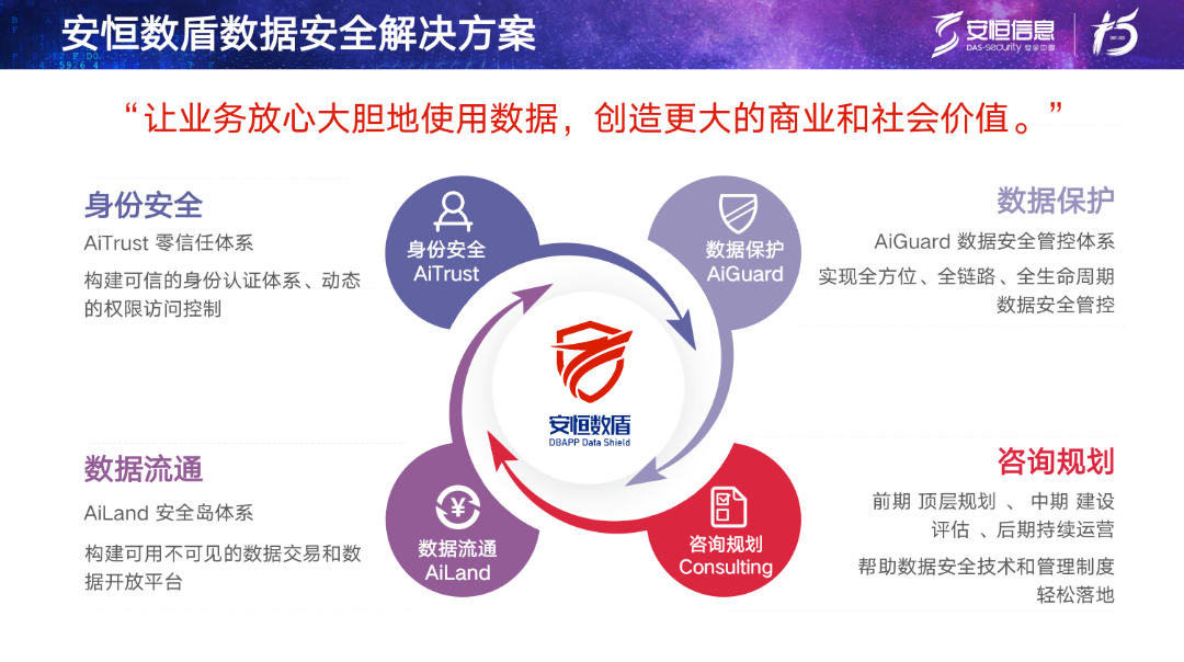 “数据安全的目的,不是把数据锁牢,而是让业务放心大胆地使用数据,创造更大的商业和社会价值。”安恒信息首席科学家刘博博士介绍。