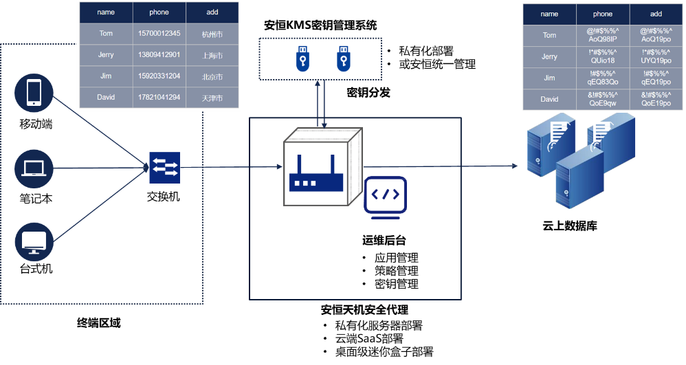 在云平台上,提供云数据安全中心,以基础数据安全原子能力(如数据访问控制、数据脱敏、数据溯源、数据防泄漏等)为基础,配合零信任体系,杜绝因权限导致的数据安全问题,以解决云上租户数据隔离、数据共享的安全需求,整体达到数据安全集中管控、态势感知的效果。