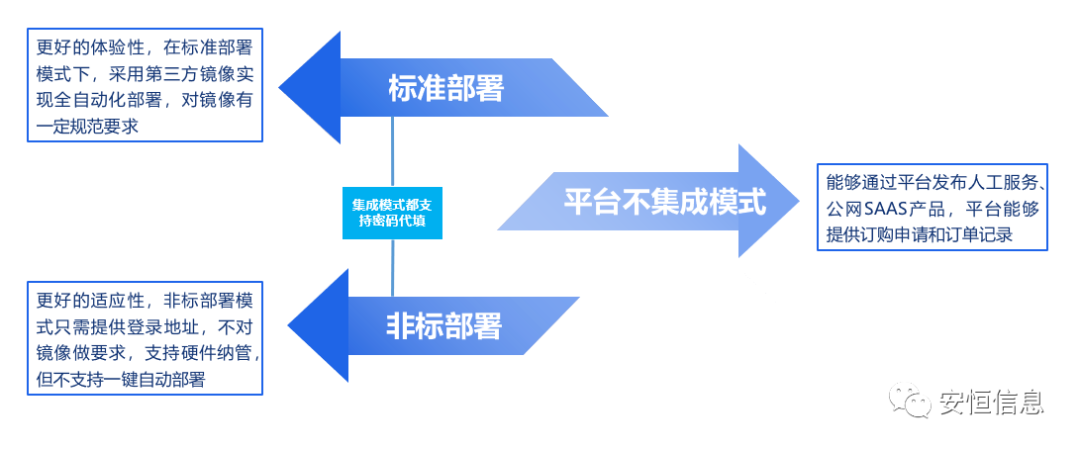 目前安恒云为门户提供三种纳管模式,分别是标准集成模式、非标集成模式、不集成仅发布模式。