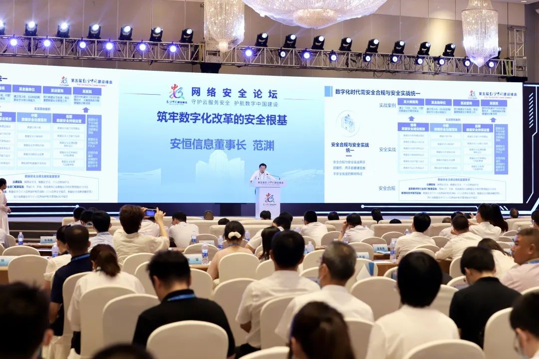 7月23日,在数字中国建设峰会网络安全论坛上,安恒信息董事长范渊发表《筑牢数字化改革网络安全根基》主题演讲,全面阐述安恒信息对数字中国网络安全建设的深刻思考与解决方案。