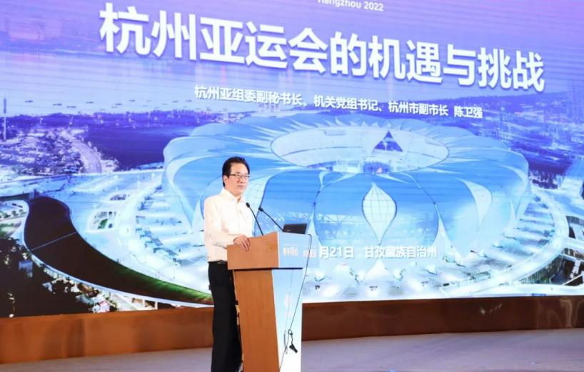 7月21日,在甘孜州站的亚运宣讲活动中,杭州亚组委副秘书长、机关党组书记、杭州市副市长陈卫强围绕“杭州亚运会的机遇与挑战”主题,向甘孜康定各界作了一场精彩生动、内涵丰富的亚运主题宣讲。“甘孜历史悠久、区位重要、生态优良、资源丰富、底蕴厚重。我们非常欢迎甘孜的畜牧、农业产品进驻,杭州亚运会也在积极搭建推广、宣传甘孜的平台。”陈卫强希望,杭甘两地携起手来,共享亚运会,共富一家亲。