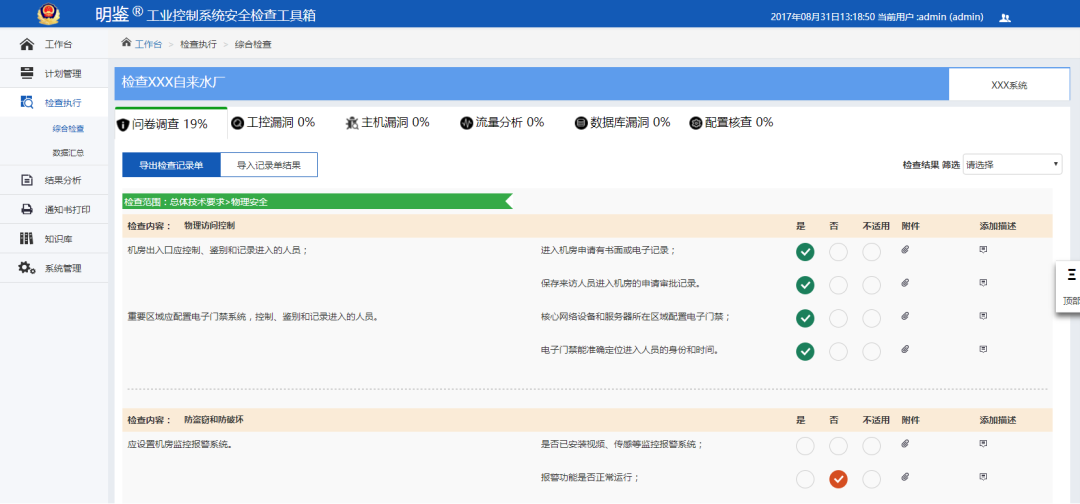 使用工控安全检查工具箱设备,利用现有网络分别在企业资源侧、工业汇聚侧和各闸坝侧进行工业现场安全情况的检查与巡检工作,便于及时发现网络内的新增资产、安全风险,全面掌握水利工控系统安全状况,建立对应的安全基线,为加强风险管理、安全防护建设提供重要的依据。
