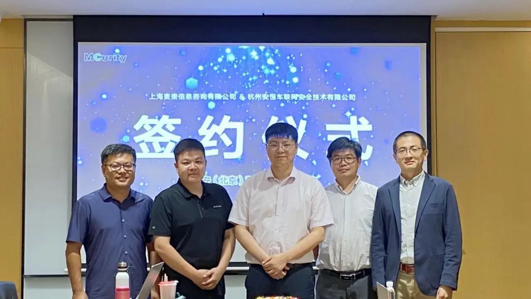 伴随着网联技术及电动汽车和自动驾驶技术的持续发展,不断增强的互联互通带来了汽车行业的深刻变革。在这样的时代背景下,8月9日,上海麦唐信息咨询有限公司(简称“麦唐”)与安恒信息举行签约仪式,依托双方在整车制造商和网络安全两个领域的独特优势强强联合,合资成立麦安(北京)科技有限公司(简称“麦安科技”)。这标志着安恒信息将在智能网联汽车生态领域发挥更全面的安全能力。