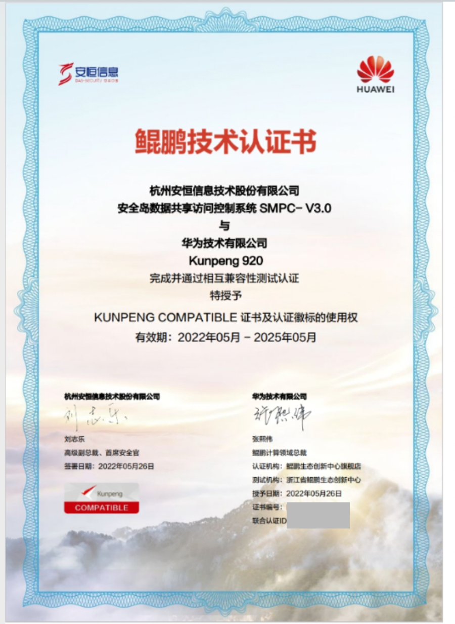 近期,安恒AiLand数据安全岛通过华为鲲鹏相互兼容性认证及全栈性能调优认证等一系列技术认证,标志着安全岛全面支持主流国产信创服务器,在隐私计算可信执行环境方向实现了全自研、国产化和自主可控,为数据安全、网络安全打下坚实的基础。
