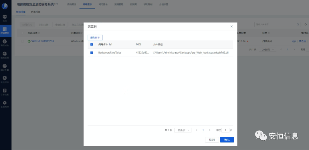 安恒EDR多层级防护,阻断疑似用友软件导致的勒索攻击