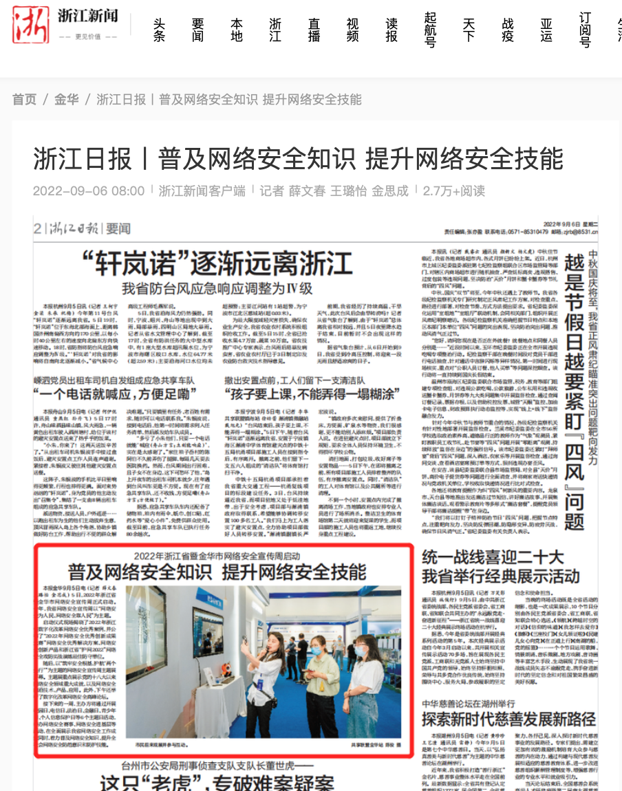 《浙江日报丨普及网络安全知识 提升网络安全技能》