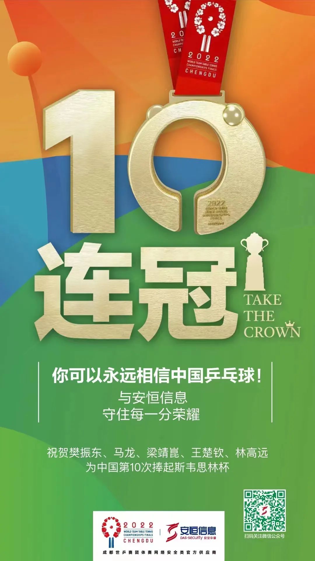 2022成都世乒赛团体赛是继2022北京冬奥会和冬残奥会之后,今年在中国举行的唯一最高级别国际单项体育团体赛事,安恒信息持续书写15年国内外重大网络安保工作“零失误”的成绩单。