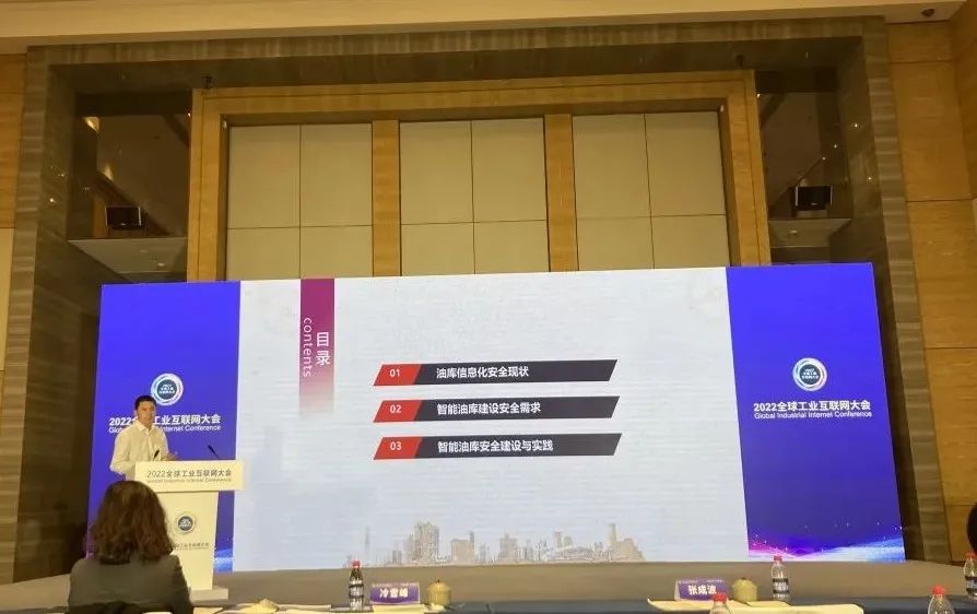 同期,在工业互联网+智慧石化专题会议上,安恒信息工业互联网安全高级解决方案专家重点分享了智能油库信息化融合面临的风险与全栈安全实践,总结了智能油库在建设和运营过程中遇到的安全风险及安全需求,并结合油库的业务流程现状,从边界防护与区域隔离、入侵检测与网络审计、终端安全、应用与数据安全、安全运维审计与服务、安全运营管理等多维度构建工业企业“全栈”安全架构,将其应用到智能油库的网络安全建设中,实现网络安全可知、可视、可管、可防、可控。