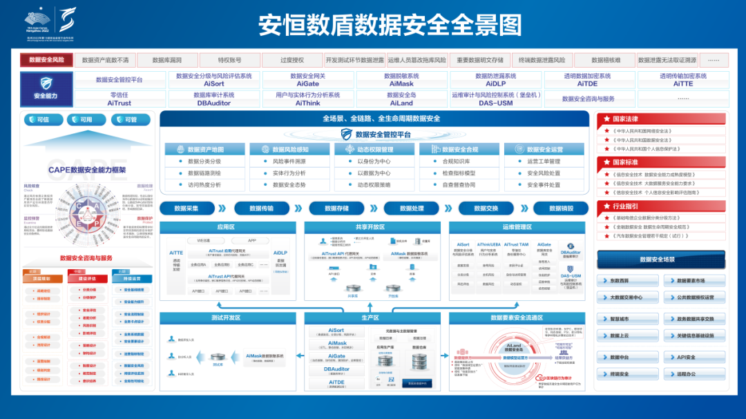 数据安全的目的,不是把数据锁牢,而是让业务放心大胆地使用数据,创造更大的商业和社会价值。为此,安恒信息诞生了“一切为数据安全而生,一切为运营数据安全而服务”的体系——安恒数盾,通过咨询规划、数据保护、身份安全、数据流通,让各自模块形成清晰的责任和特点。真正能够在可信、可用、可管、可溯源的体系中保障数据全场景、全链路、全生命周期的安全,以及实现数据的可用不可见、可用不可取,为更多的政企数据进行赋能,激活数据潜能,释放数据价值。目前,安恒数盾数据安全解决方案为政府、公安、金融、运营商、医疗等多个行业实现落地。