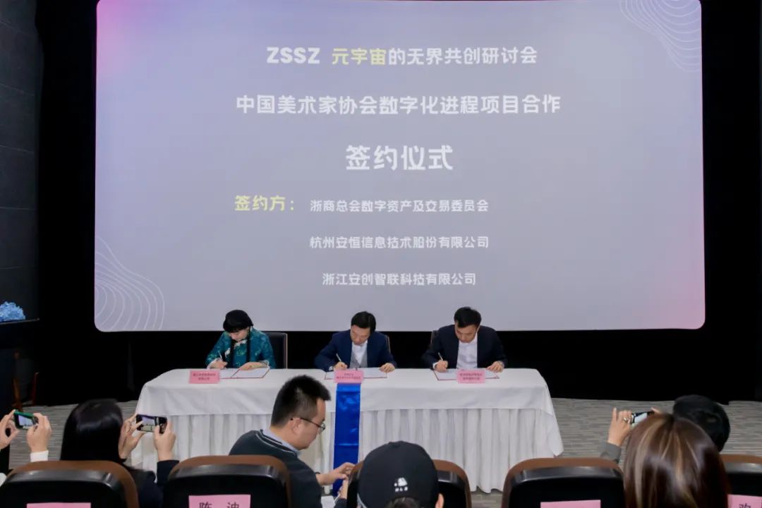 在元宇宙时代,文化艺术产业的发展将实现新的跨越。目前,元宇宙仍处于行业发展的初级阶段,无论是底层技术还是应用场景,与未来的成熟形态相比仍有较大差距,但这也意味着元宇宙相关产业可拓展的空间巨大。活动主办方以“无界共创”为题,组织杭州各界精英共同探讨艺术与科技的创新融合,期待艺术在元宇宙时代创造全新的形态,产生新的价值。主题研讨后,中国美术家协会数字化进程项目合作签约仪式、浙商总会数字资产及交易委员会时光会客厅授牌仪式相继举行。