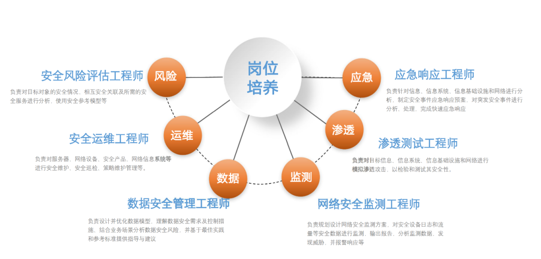 安恒信息结合多年产教融合经验,通过协助院校进行课程体系、实践体系、双师培养、实训基地建设等方式,助力数字安全人才培养,以技术赋能,与高校共同打造创新人才培养模式。