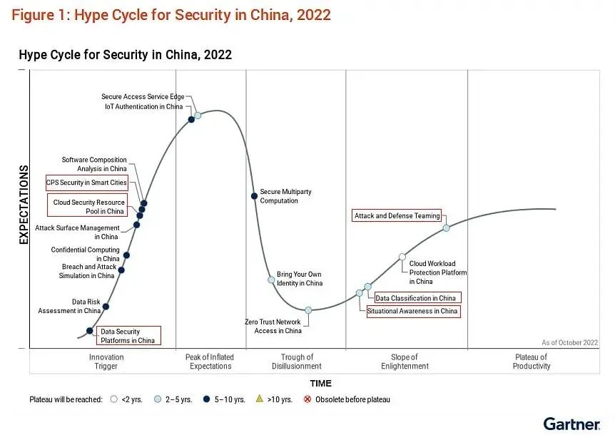 近期,国际权威IT研究机构Gartner发布《2022中国网络安全技术成熟度曲线》(Hype Cycle for Security in China, 2022)报告。安恒信息入选数据安全平台、云安全资源池、智慧城市网络物理系统安全、态势感知、数据分类分级和攻防团队六大领域代表厂商。报告同时指出,数据分类分级技术正处于稳步爬升复苏期,表明该技术正被越来越多的企业所应用,并获得更广泛的认识。