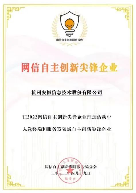 凭借多年来终端安全领域的持续积累,荣获2022网信自主创新尖峰企业之终端和服务器领域自主创新尖峰企业奖。