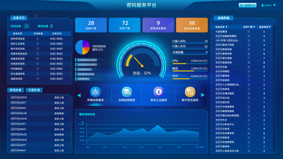密码监管平台上线,实现从服务到监管的延伸,为主管单位提供密码应用监管能力。