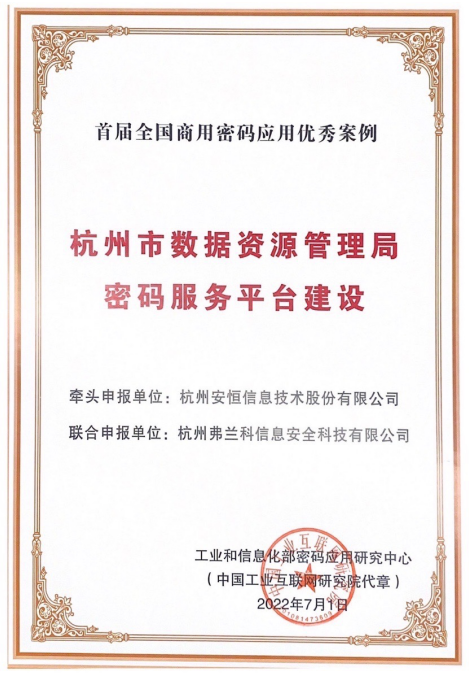 2022年,安恒信息及旗下子公司弗兰科信息深耕密码领域,围绕新应用和数据安全领域,提供完整密码产品体系;满足密评合规性、助力产业升级及数据安全发展。