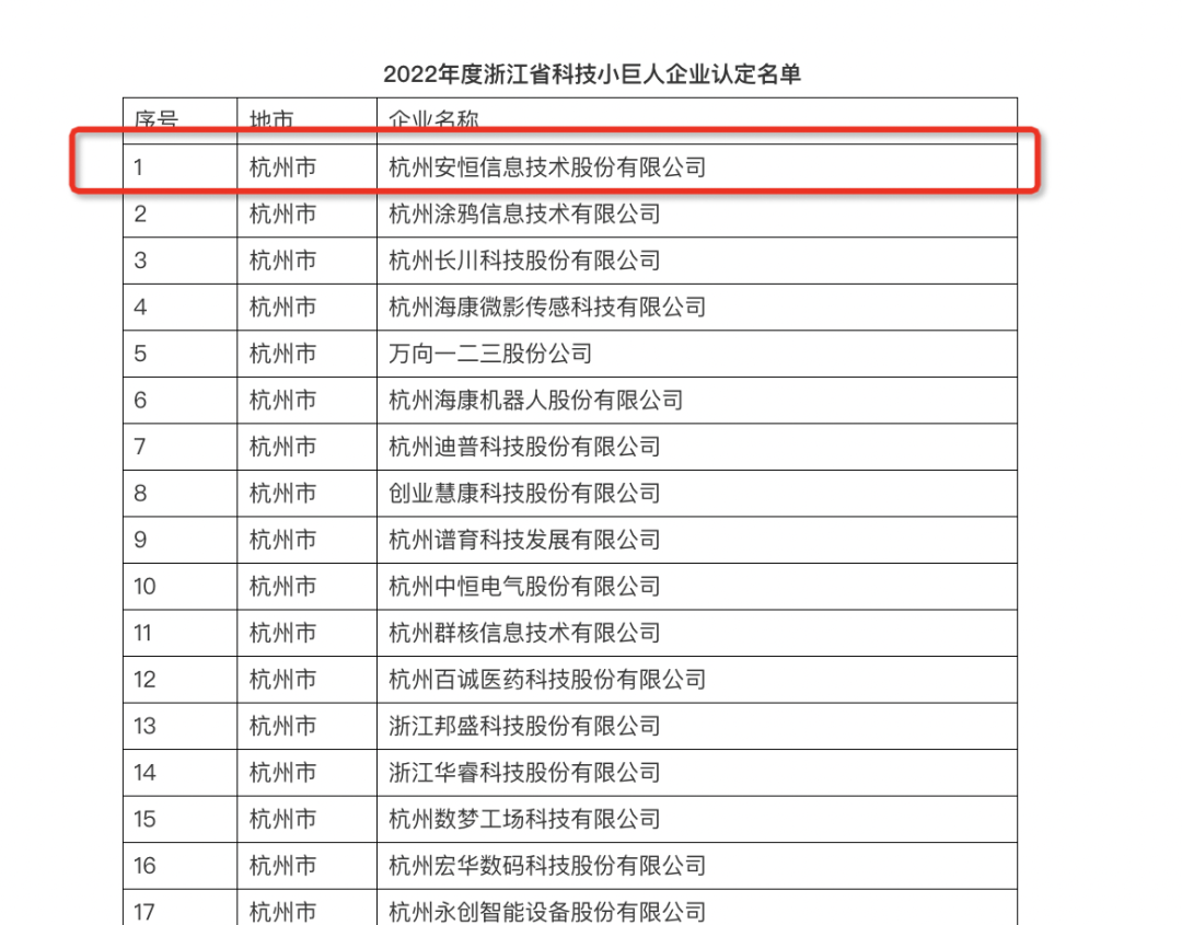浙江首批!安恒信息获评“科技小巨人”