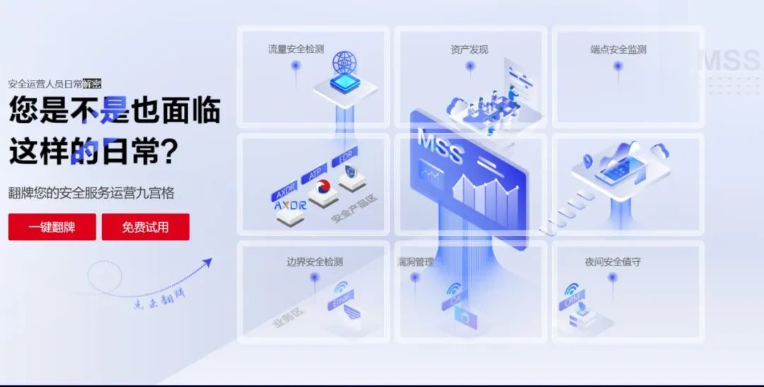为满足更多客户的需求,本次安恒官网焕新的同时,还增加了不同版本的产品,复制下方网址链接,快进入新官网领取您的专属MSS吧:https:/product/operate.html