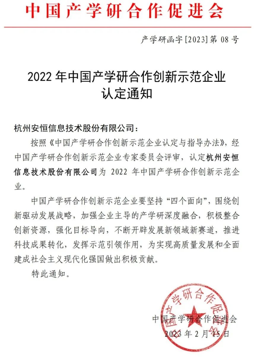 安恒信息入选“2022年中国产学研合作创新示范企业名单”