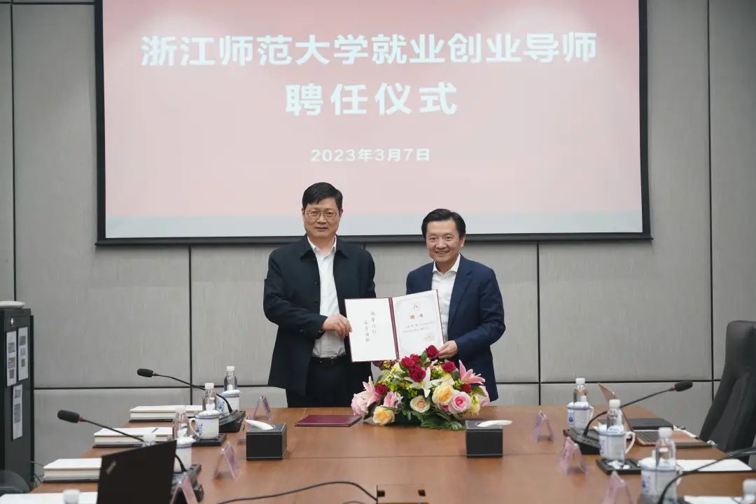 为更好地促进交流合作,双方还开展座谈会进行深入交流。现场,范渊被聘任为浙江师范大学兼职教授和就业创业导师。
