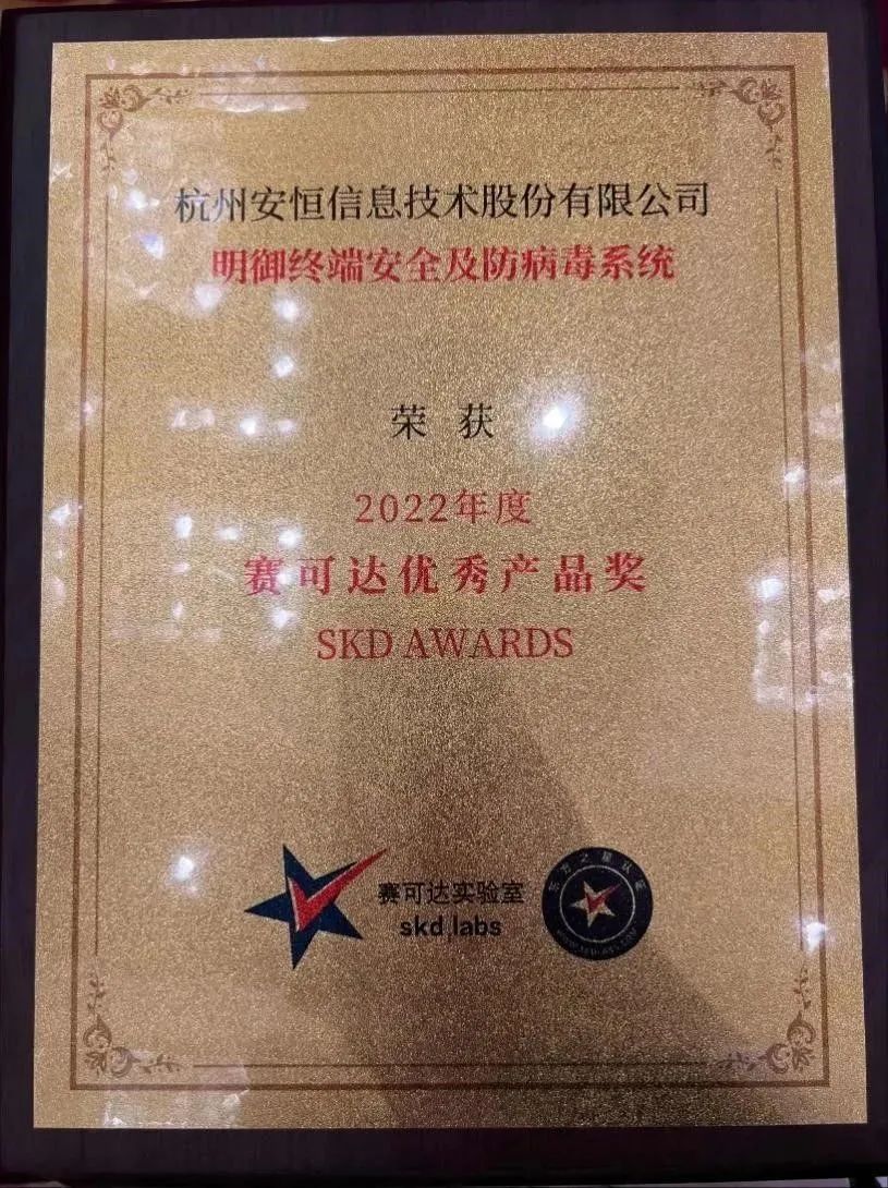 近日,国际知名第三方网络安全检测服务机构——赛可达实验室发布了备受业界瞩目的SKD AWARDS 2022年度获奖名单,安恒信息“明御终端安全及防病毒系统(EDR)”荣获“2022年度赛可达优秀产品奖(SKD AWARDS )”,这是连续三年来安恒信息EDR第4次获得赛可达奖项。