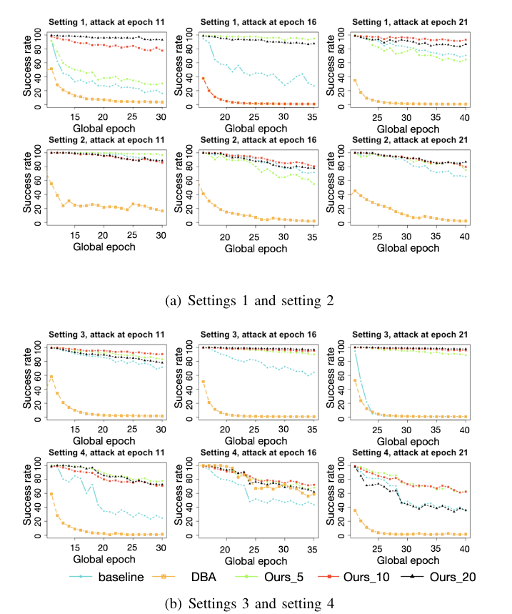 最后,通过对提出的攻击模式进行了测试,验证了该方法对于联邦学习单次后门攻击成功率以及留存时间的提升。同时,还分析了该攻击的潜在防御手段。