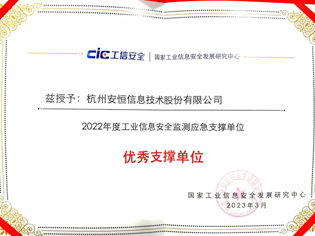 大会同期对2022年度工业信息安全应急服务支撑工作表现突出的成员单位进行了表彰,安恒信息凭借自身在应急服务规范、应急服务案例、应急服务保障、技术实力等方面的优势,被授予“2022年度工业信息安全监测应急优秀支撑单位”。此外,公司配合联盟积极开展工业信息安全应急管理相关工作,助力推动国家工业信息安全应急体系建设,保障工业信息安全。