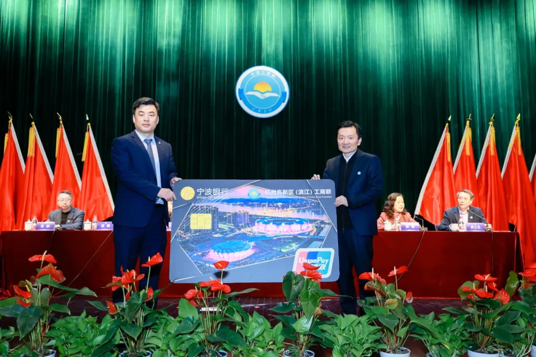 会上联合北航杭州创新研究院举行了“滨航产研会客厅”揭牌仪式,发布了区工商联与宁波银行的联名卡,助力创新链、产业链、资金链融合发展。