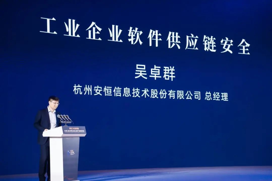在会议期间,安恒信息总经理吴卓群在“洞悉变化、顺应发展”企业家论坛上发表了《工业企业软件供应链安全》主题演讲。他谈到,企业数字化的目标是现实价值链重塑,而全面数字化是工业互联网供应链发展的必然趋势。工业领域供应链的数字化需求和意愿加快释放,全面数字化转型已经成为共识,工业互联网供应链涉及的系统、实体、活动多样及结构复杂等特性扩大了其受攻击面,着手构建更独立、完整、安全的工业互联网供应链将是新的趋势。