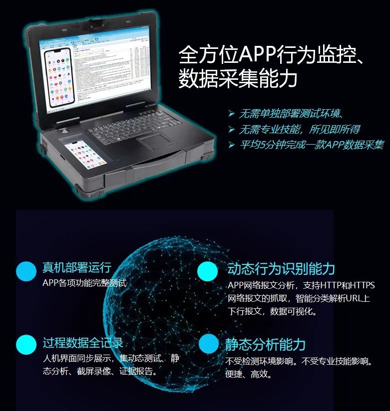 而如何识别App的数据采集行为则成了急需解决的技术问题。安恒明鉴移动应用App检测评估工具支持对移动终端App中个人信息采集使用情况进行全面监控,从动态、静态两大维度实现App的行为分析,帮助用户完成对App的合规情况检测。