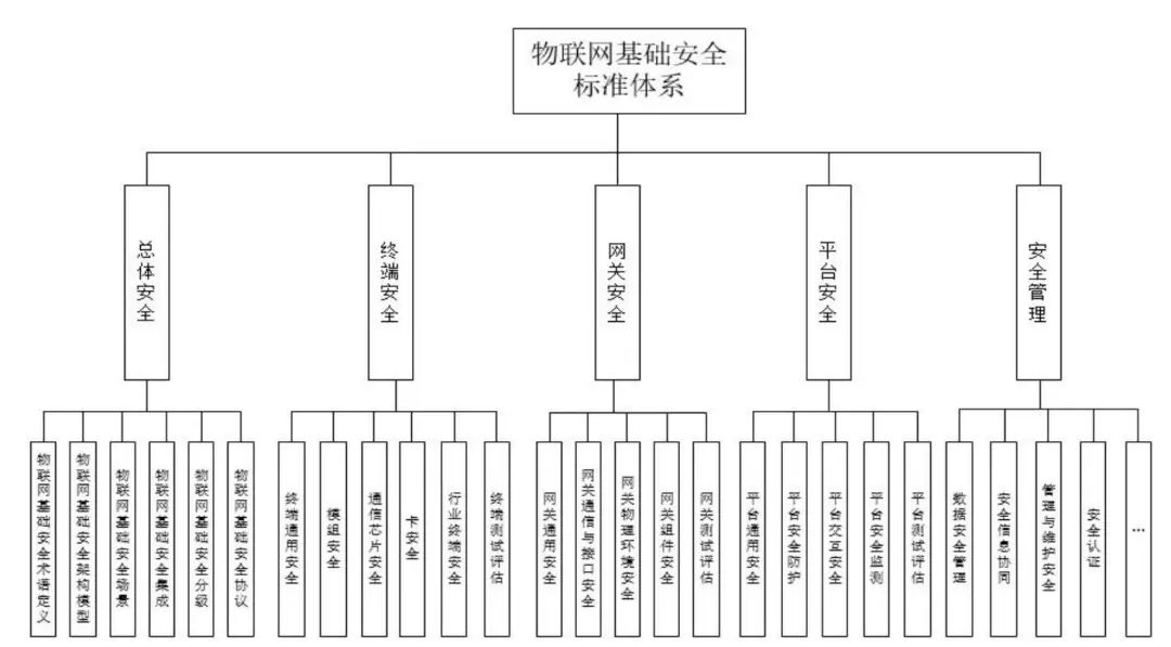 《行动计划》提出,物联网基础安全标准主要是指物联网终端、网关、平台 等关键基础环节的安全标准。物联网基础安全标准体系包括 总体安全、终端安全、网关安全、平台安全、安全管理等 5 大类标准。