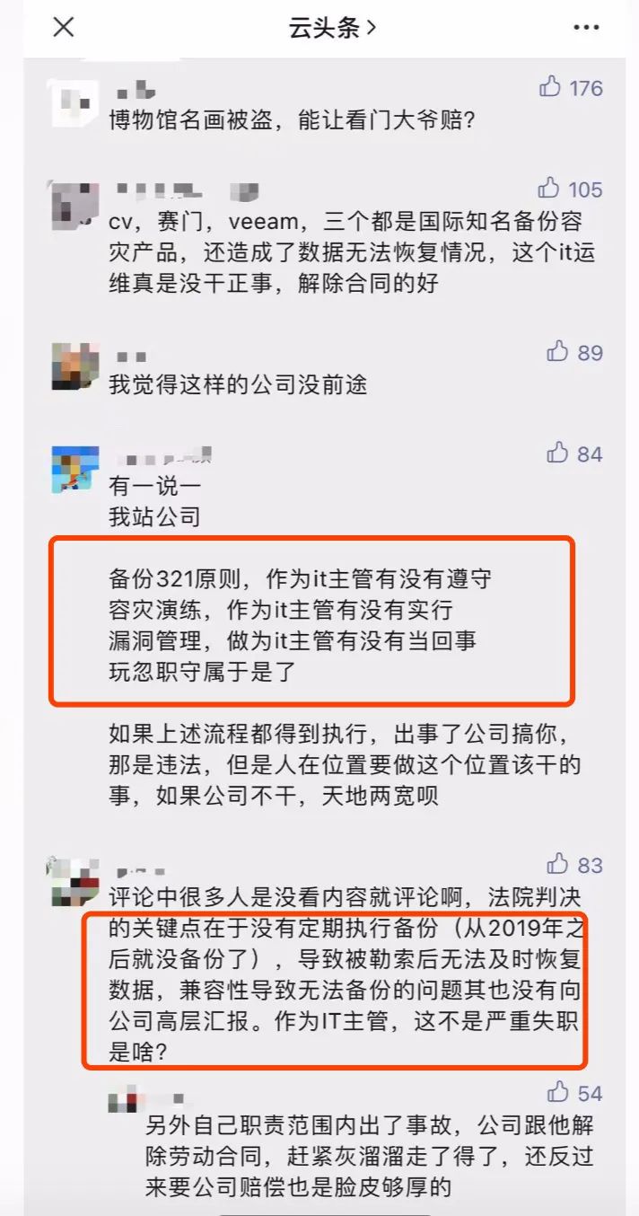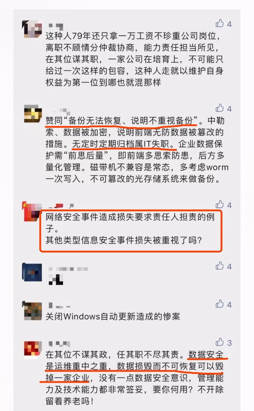针对该事件,网友们也展开了热烈的讨论,大家纷纷看到了事件中的关键利害关系:运维不受重视、企业投入不足、IT主管失职等问题是导致事件发生的主要原因。