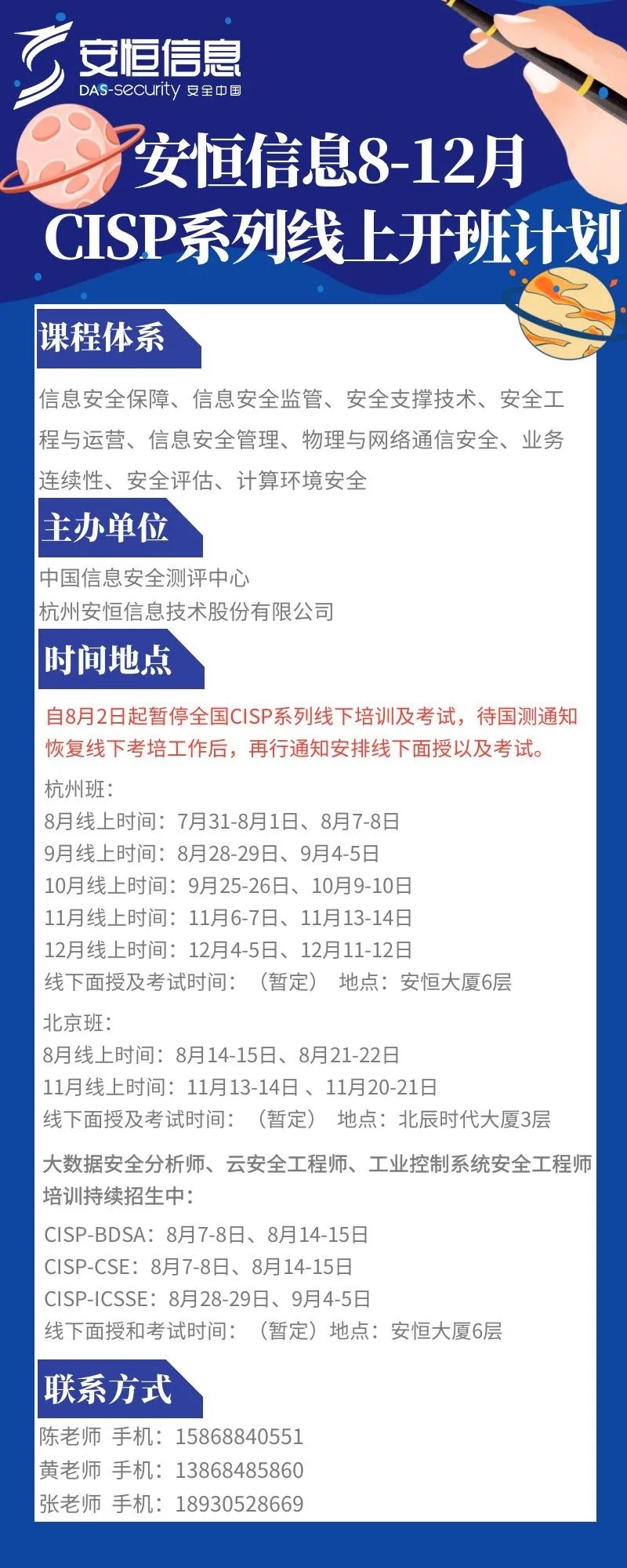 速来报名| 安恒信息8-12月CISP系列线上班来啦!