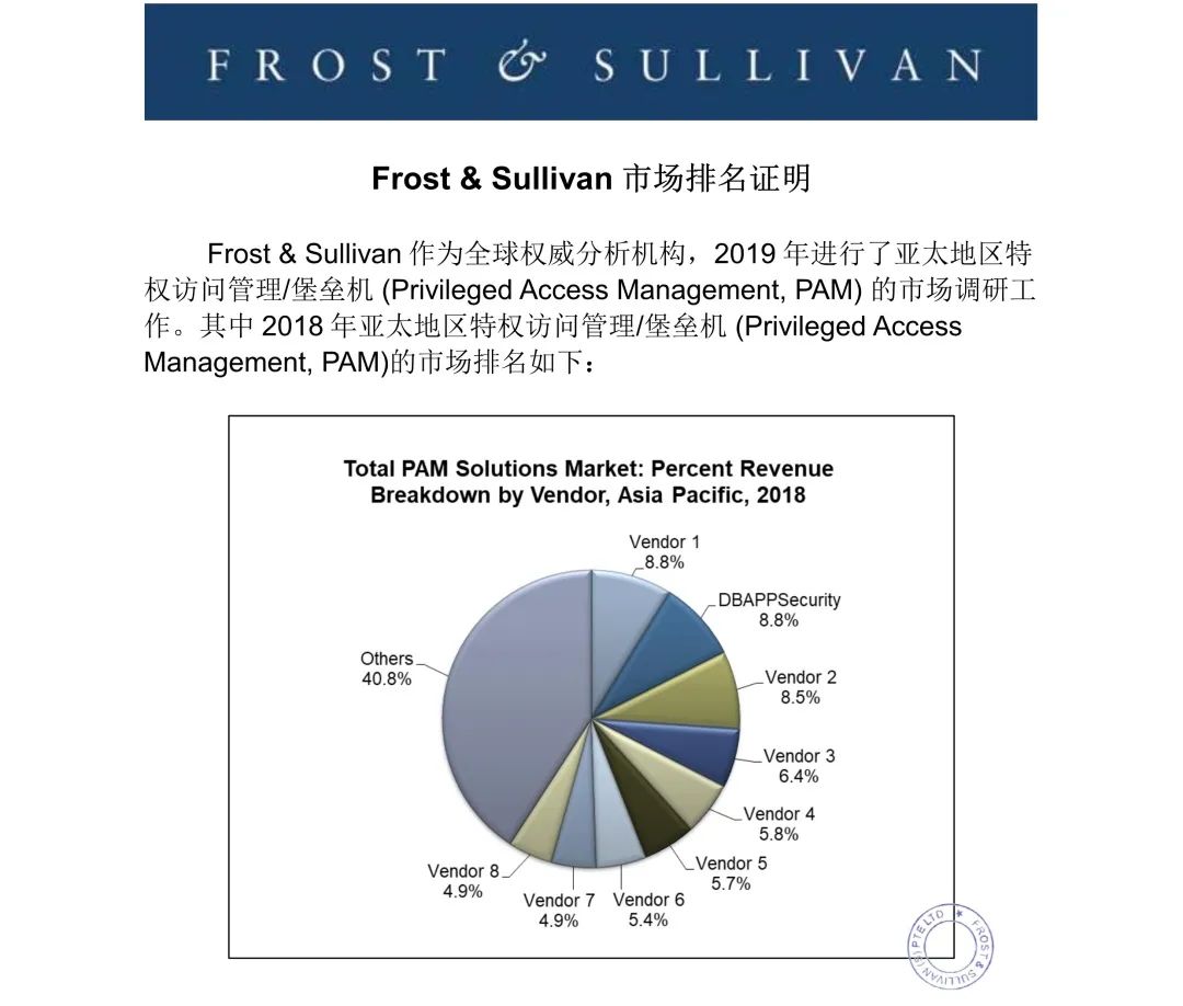 此前,安恒信息堡垒机已获得Frost&Sullivan 2018年亚太区和大中华区市场占有率第一名,2019年IDC中国硬件运维安全管理产品市场占有率第二名等荣誉。