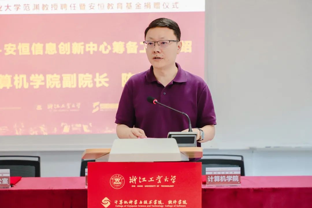 计算机科学与技术学院、软件学院陈铁明副院长介绍了浙工大-安恒信息创新中心的筹备工作。