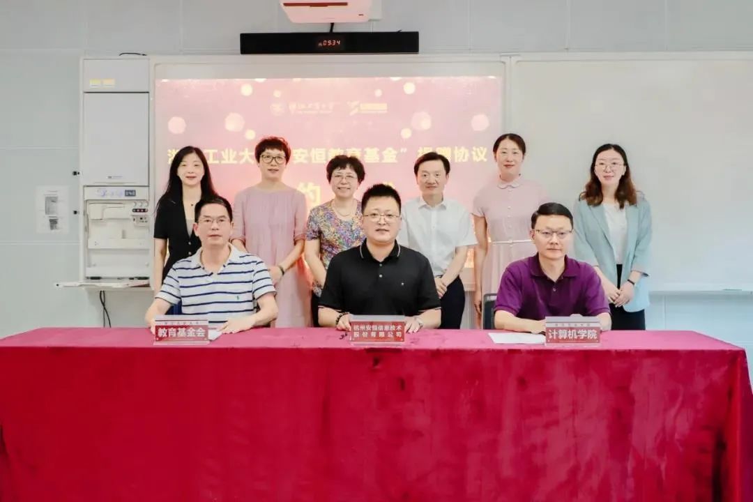 聘任仪式后,双方领导及代表共同商讨了杭州安恒公益基金会与浙江工业大学合作的相关事宜,举行了“安恒教育基金”捐赠协议签约仪式。杭州安恒公益基金会设立“安恒教育基金”,未来将对浙江工业大学优秀学子和贫困学子提供资助和支持。
