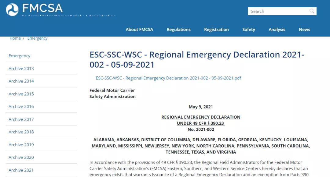 5月9日,因大型成品油管道系统运营商科洛尼尔管道运输公司遭受勒索病毒攻击,导致管道停止运营3日。美国交通部联邦汽车管理局发布“区域紧急状态”,以避免管道关闭导致燃油短缺。