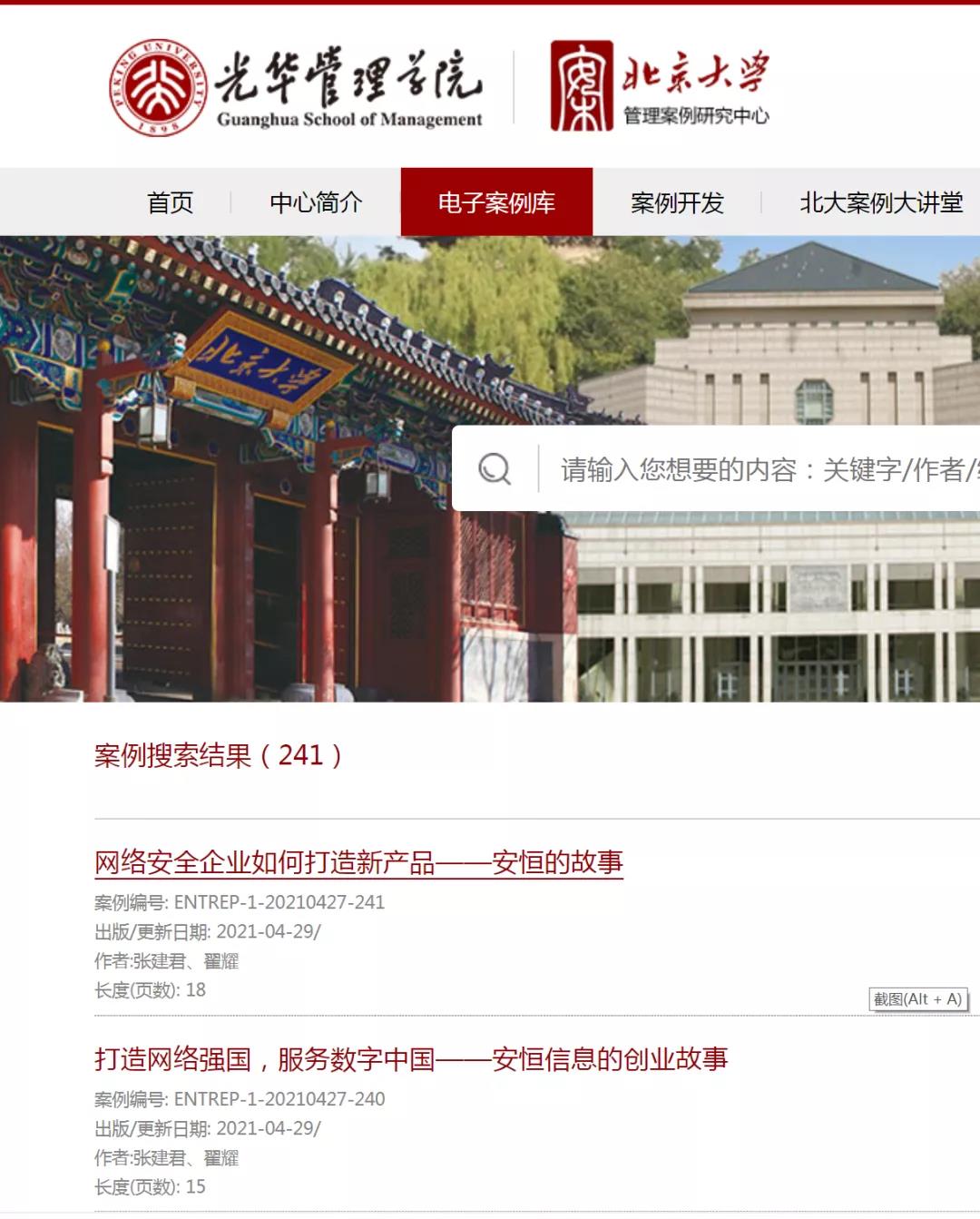 近日,北京大学管理案例研究中心正式将《网络安全企业如何打造新产品——安恒的故事》和《打造网络强国,服务数字中国——安恒信息的创业故事》两个案例收录进案例库,用于北京大学光华管理学院的教学和研究使用。安恒信息在网络安全领域的探索不仅获得了业界的广泛认可,也受到了学界的关注。