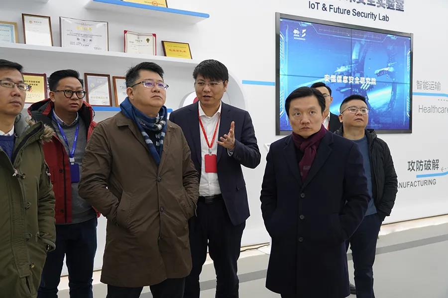 会前,陈海锋一行参观了安恒信息网络安全创新体验中心,全面了解了公司发展历程、重保事记、核心技术、荣誉奖项以及公司在物联网等领域的研究方向,并听取了安恒信息利用先进的技术构建完善的物联网安全整体解决方案。