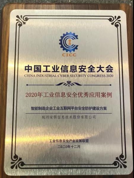 在2020年的中国工业信息大会上,安恒信息荣获“2020年工业信息安全优秀应用案例”。这是自2018年工业信息安全产业发展联盟首次举办案例征集活动以来,安恒信息连续三年获此奖项。