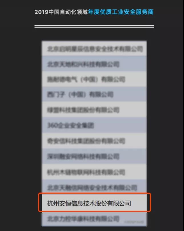 连续三年(2017-2019)入选“中国自动化领域年度优质工业安全服务商”。